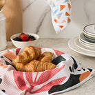 Our set features 2 waffle towels with unique yet coordinating designs and measures at 16" x 28" in size, making it a perfect essential for adding style and versatility to your kitchen.