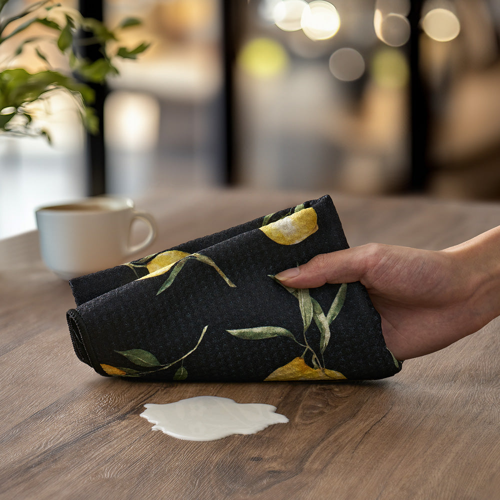 High quality microfiber kitchen dish towels that make drying dishes and kitchen clean up a breeze. These absorbent kitchen towels can hold more than 5x their weight in liquid.