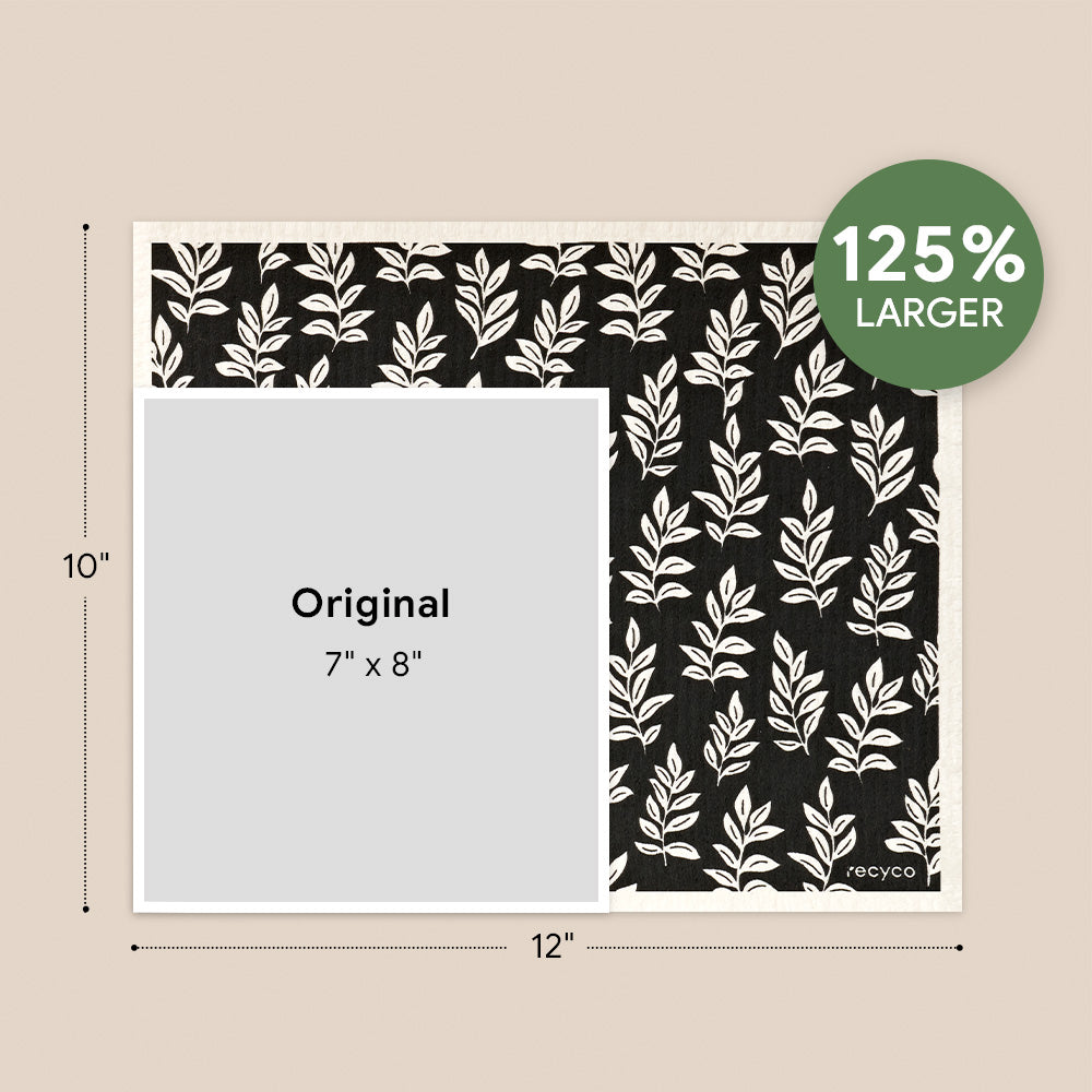 The new Recyco oversized Swedish dishcloth is 10"x12" in size and 125% larger than regular dishcloths in the market. Now you can clean with ease on a larger scale.