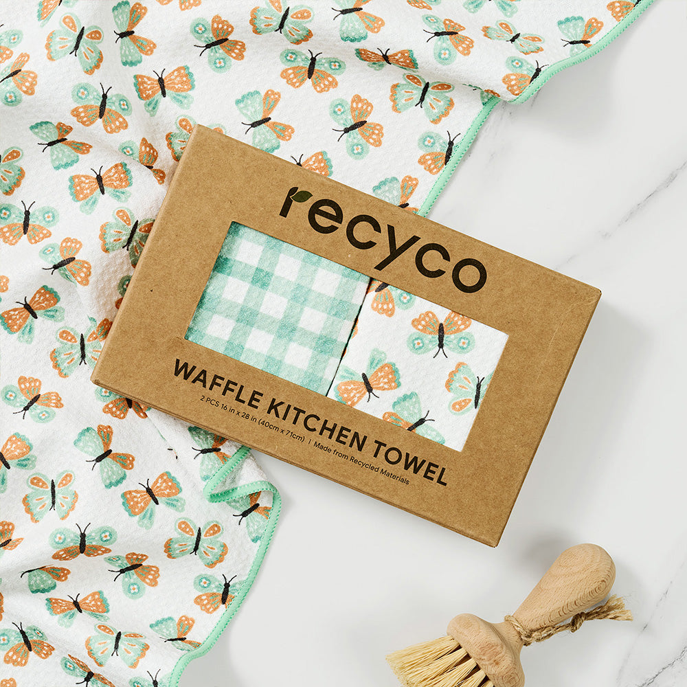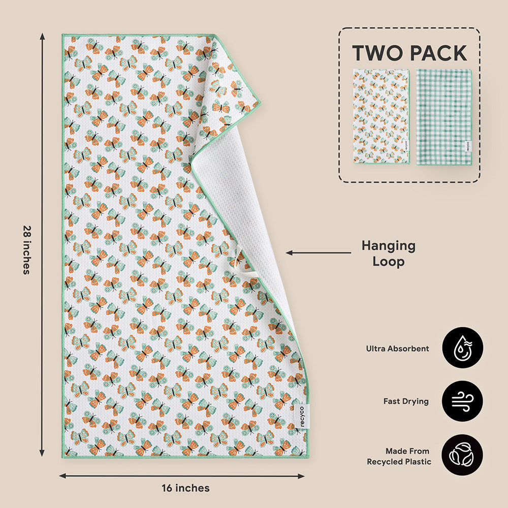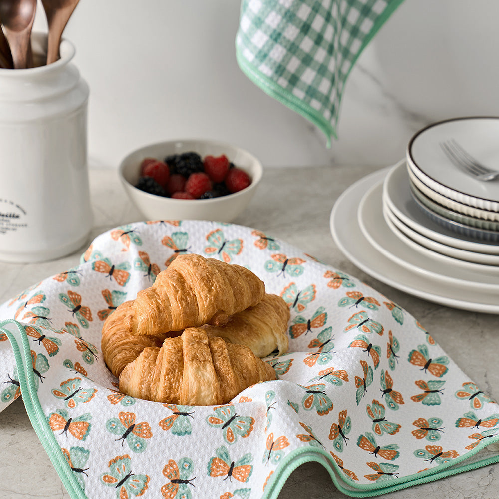 Butterfly Gingham Waffle Kitchen Towel - 2 Pack