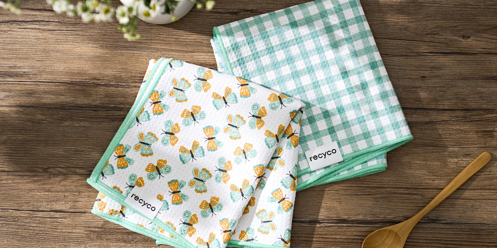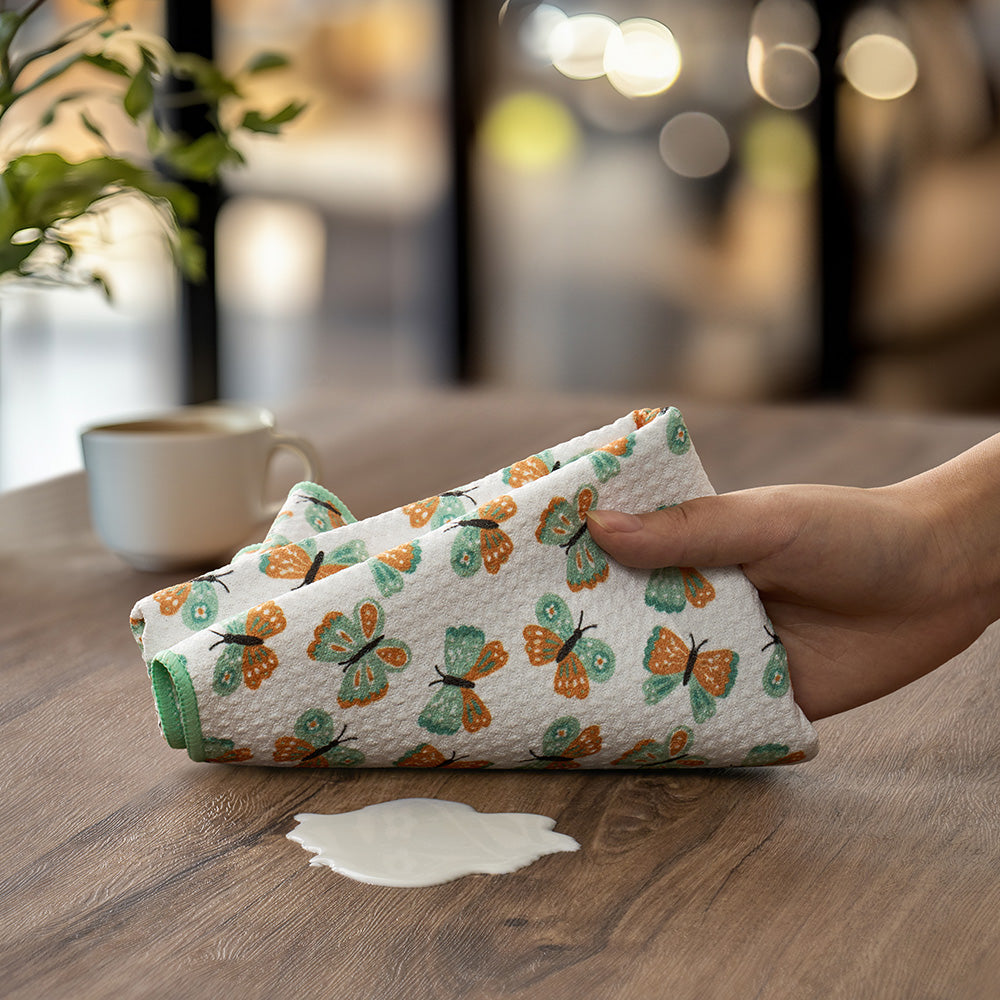 Elevate your kitchen with towels that blend style, functionality, and sustainability. Made from 2 recycled plastic bottles, these ultra-absorbent towels hold up to five times their weight in liquid. Lightweight yet durable, they’re crafted with our premium Aerodry™ microfiber—gentle on hands, tough on messes. With fast-drying capabilities and convenient sewn-in loops, they’re the ultimate choice for a cleaner kitchen and a greener planet.