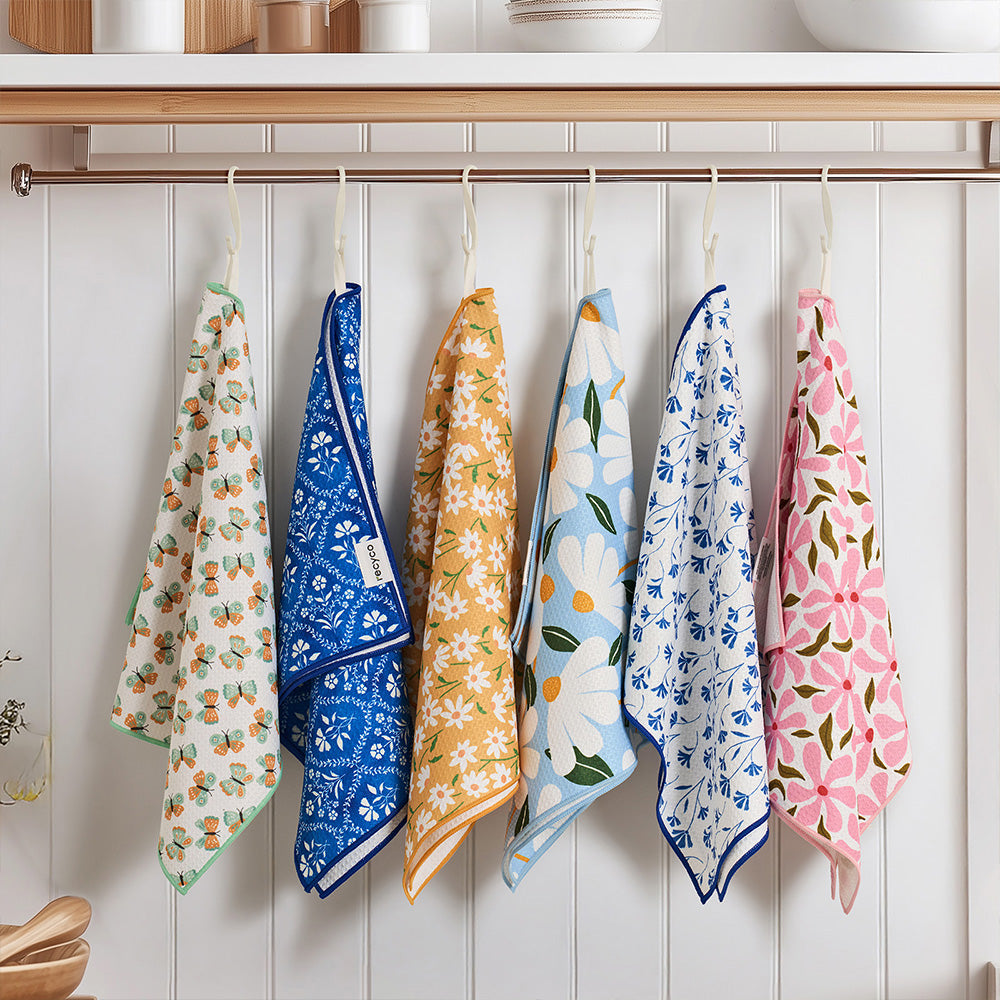 High quality microfiber kitchen dish towels that make drying dishes and kitchen clean up a breeze. These absorbent kitchen towels can hold more than 5x their weight in liquid.