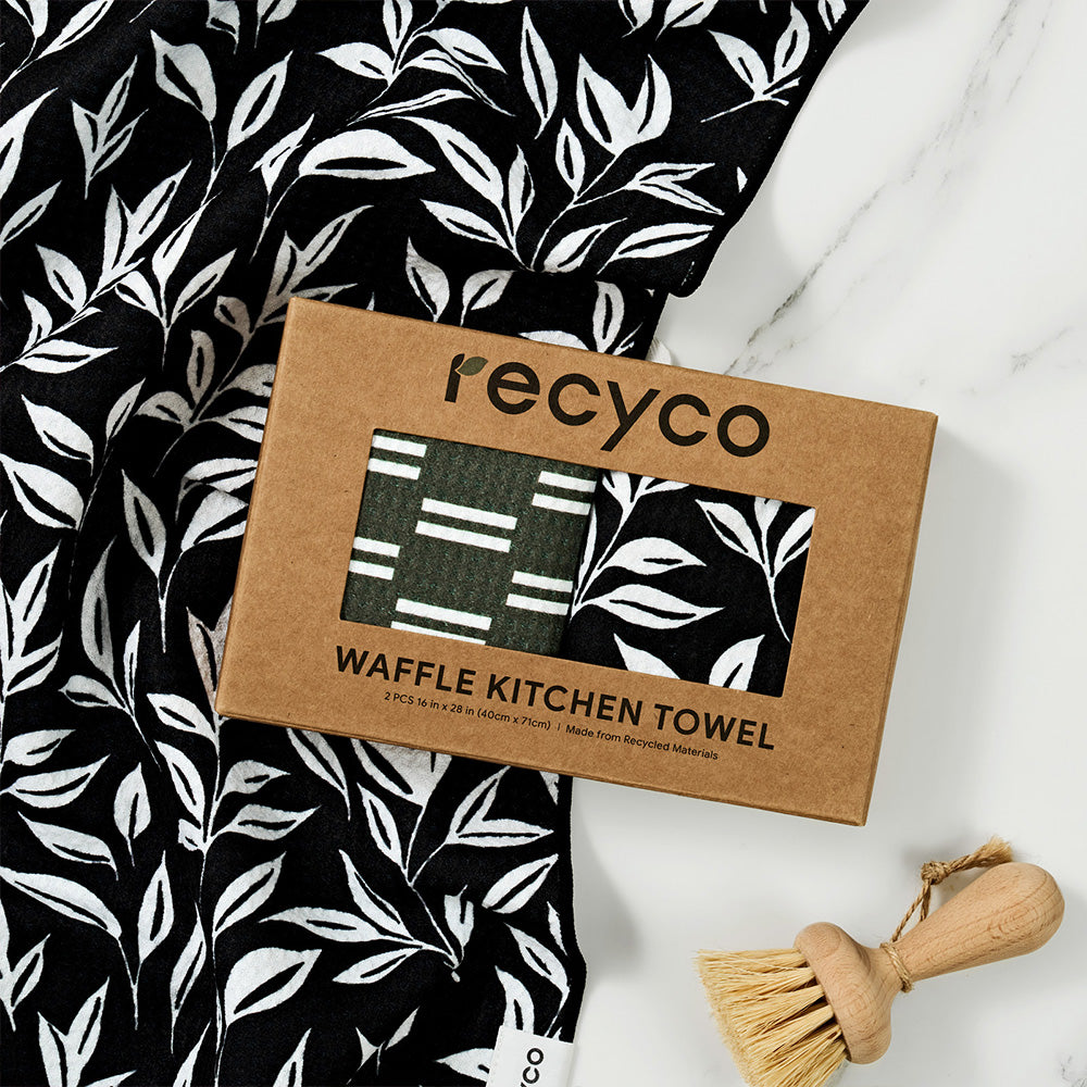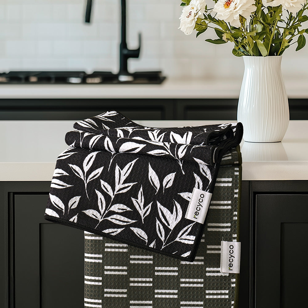 Elevate your kitchen with towels that blend style, functionality, and sustainability. Made from 2 recycled plastic bottles, these ultra-absorbent towels hold up to five times their weight in liquid. Lightweight yet durable, they’re crafted with our premium Aerodry™ microfiber—gentle on hands, tough on messes. With fast-drying capabilities and convenient sewn-in loops, they’re the ultimate choice for a cleaner kitchen and a greener planet.