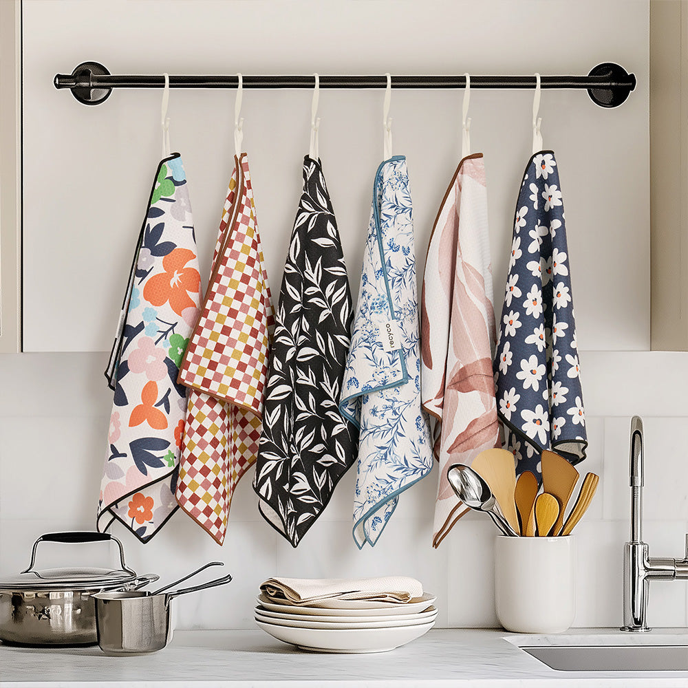 High quality microfiber kitchen dish towels that make drying dishes and kitchen clean up a breeze. These absorbent kitchen towels can hold more than 5x their weight in liquid.