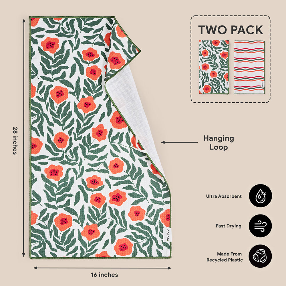 Poppy Waves Waffle Kitchen Towel - 2 Pack