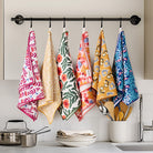 Our set features 2 waffle towels with unique yet coordinating designs and measures at 16" x 28" in size, making it a perfect essential for adding style and versatility to your kitchen.
