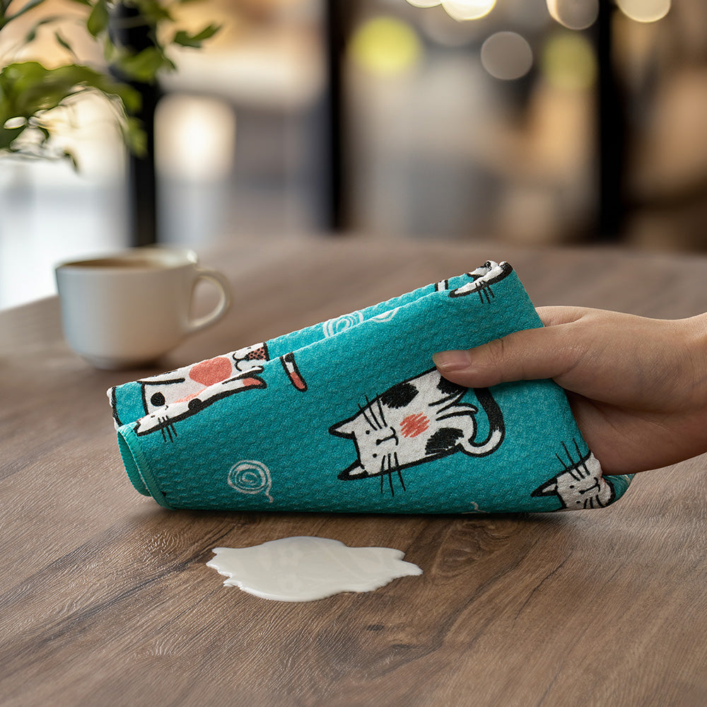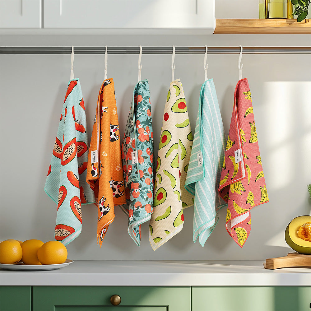 High quality microfiber kitchen dish towels that make drying dishes and kitchen clean up a breeze. These absorbent kitchen towels can hold more than 5x their weight in liquid.