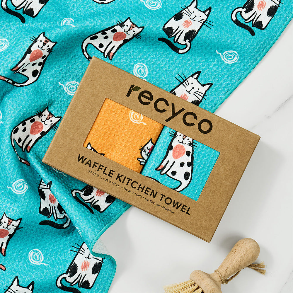 Cuddly Cats Waffle Kitchen Towel - 2 Pack