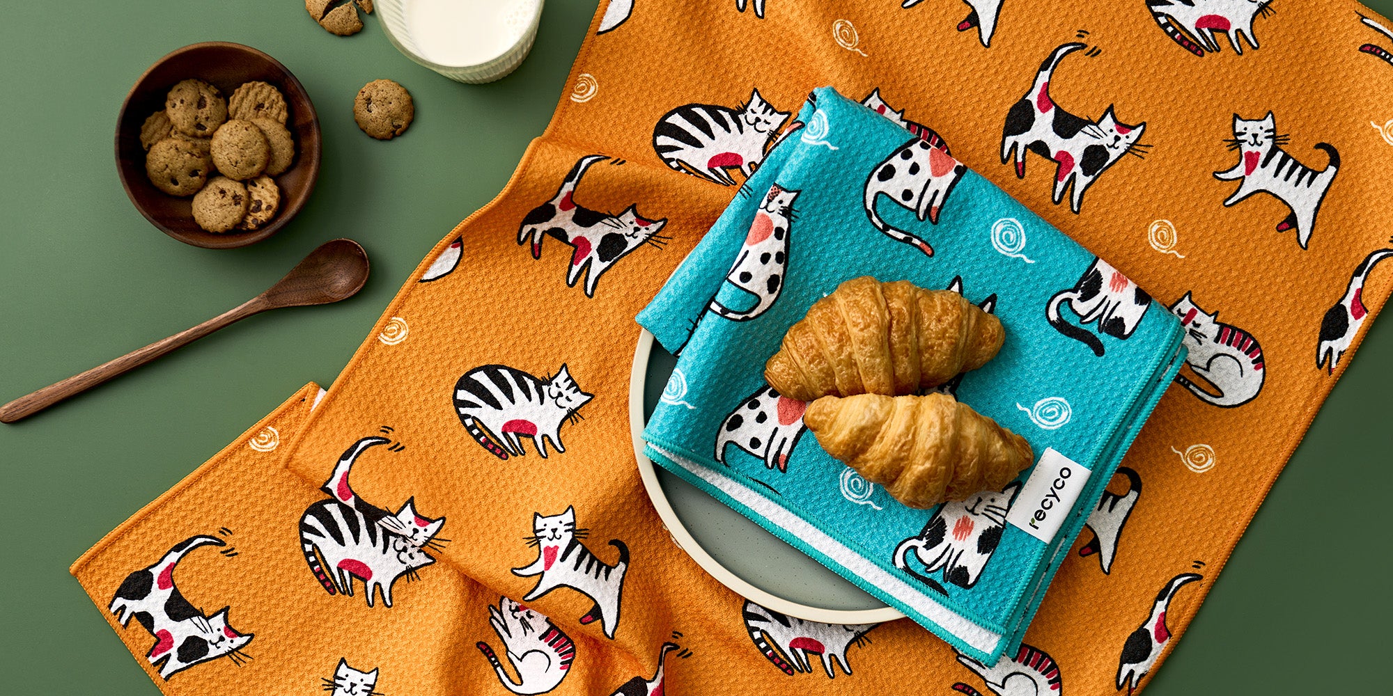 Elevate your kitchen with towels that blend style, functionality, and sustainability. Made from 2 recycled plastic bottles, these ultra-absorbent towels hold up to five times their weight in liquid. Lightweight yet durable, they’re crafted with our premium Aerodry™ microfiber—gentle on hands, tough on messes. With fast-drying capabilities and convenient sewn-in loops, they’re the ultimate choice for a cleaner kitchen and a greener planet.