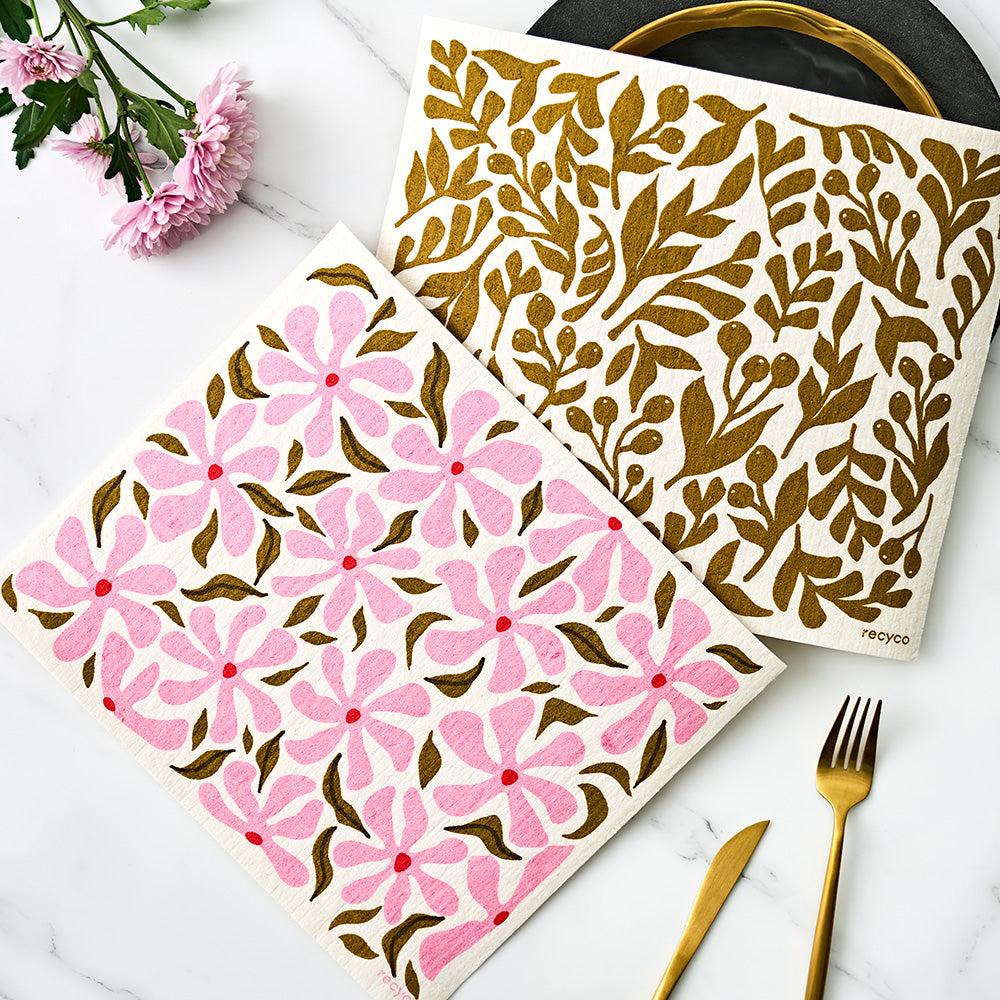 Petal & Leaf Oversized Swedish Dishcloth Set - 2 Pack