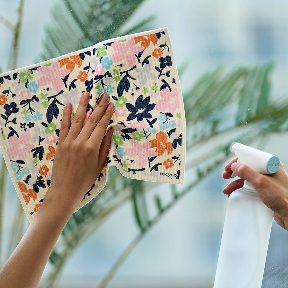 To clean, toss in the washing machine or place on the top rack of the dishwasher. Lay flat to dry. When your Swedish dish cloth has reached the end of its lifecycle (9 months or even more!), simply toss in the compost and you'll be all set.