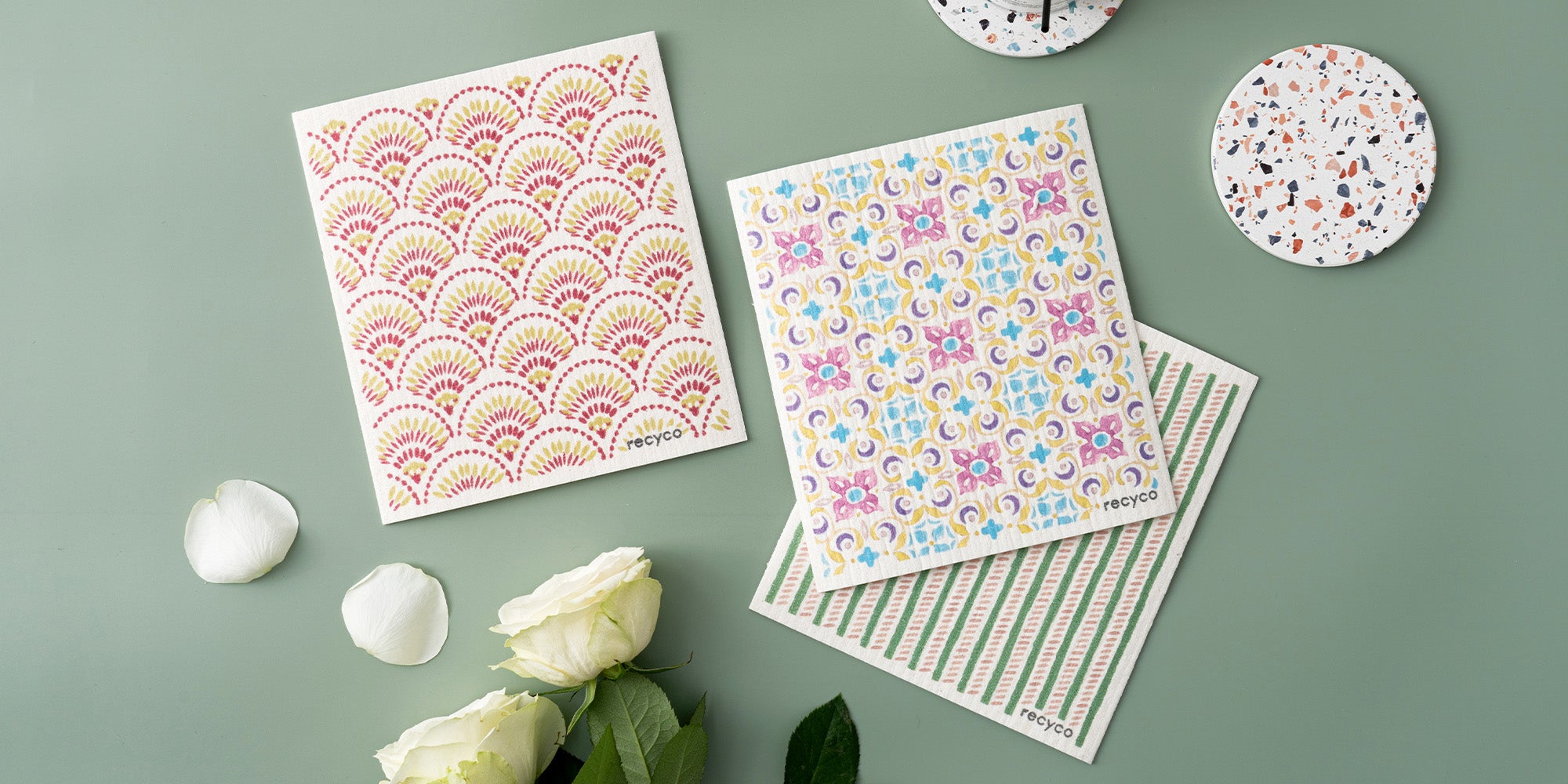 To clean, toss in the washing machine or place on the top rack of the dishwasher. Lay flat to dry. When your Swedish dish cloth has reached the end of its lifecycle (9 months or even more!), toss in the compost.