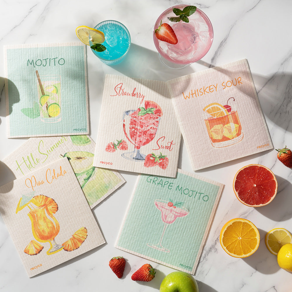 Cocktails Happy Hour Swedish Dishcloth Set - 6 Pack