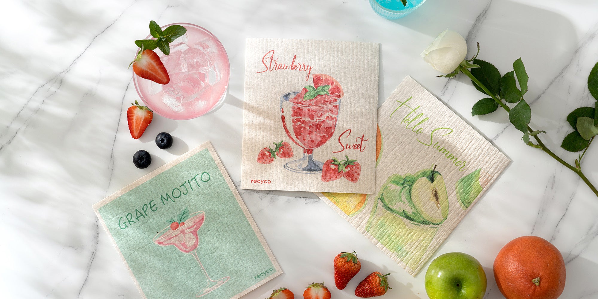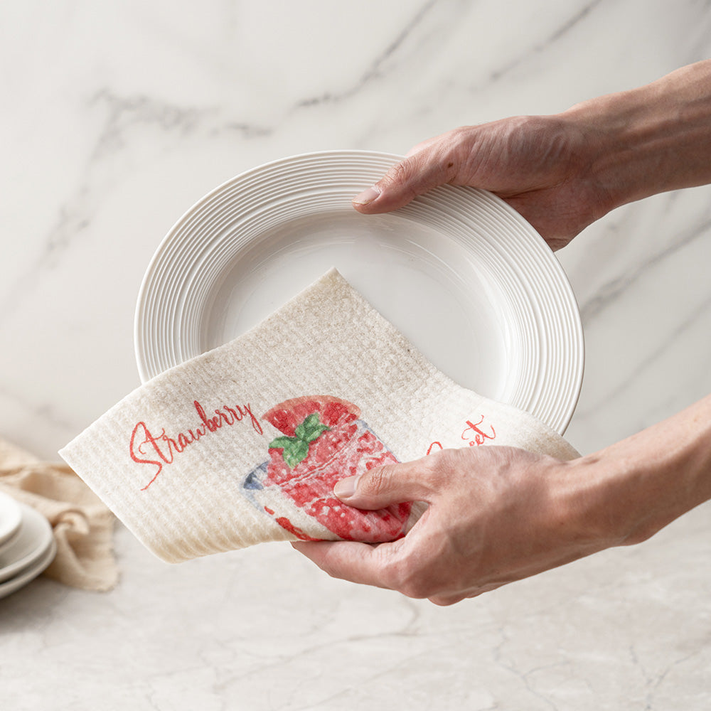 To clean, toss in the washing machine or place on the top rack of the dishwasher. Lay flat to dry. When your Swedish dish cloth has reached the end of its lifecycle (9 months or even more!), toss in the compost.