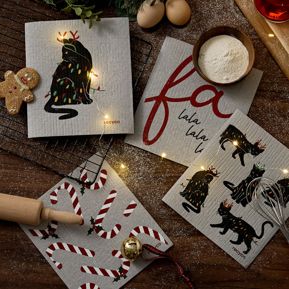 Holiday Whiskers Swedish Dishcloth Set - 4 Pack