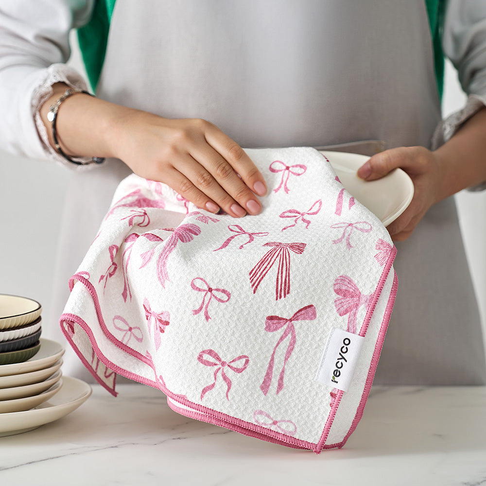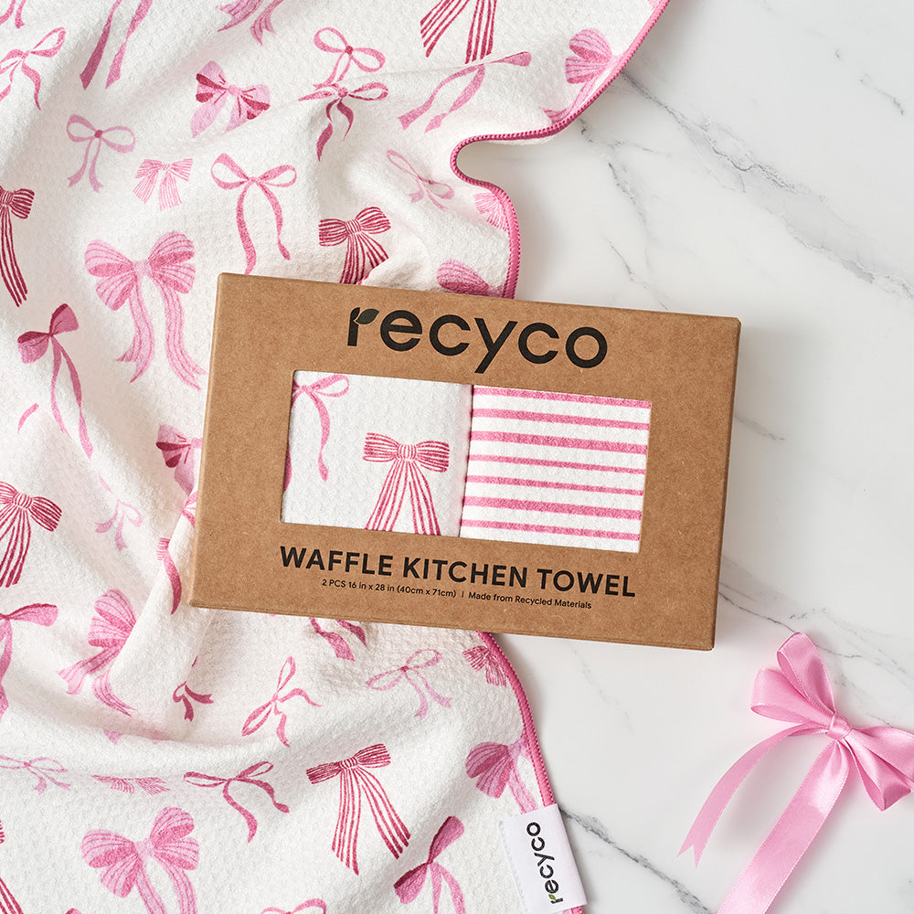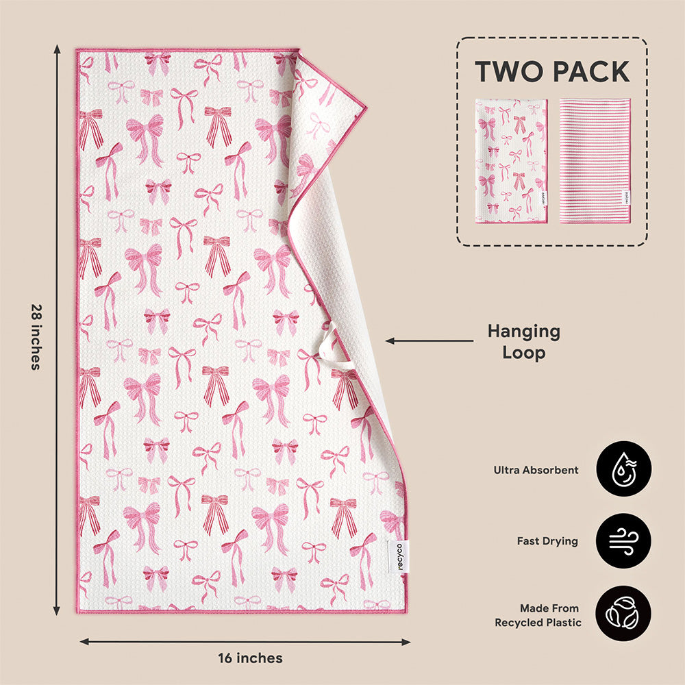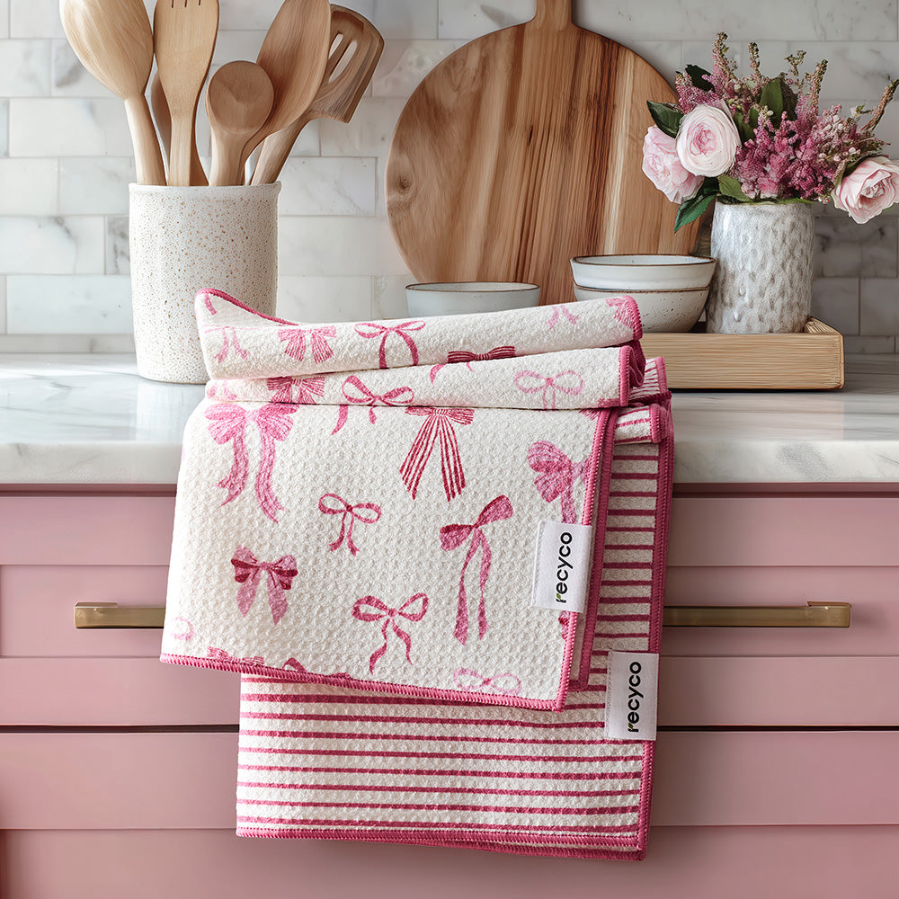 Bow Bubblegum Pink Waffle Kitchen Towel - 2 Pack