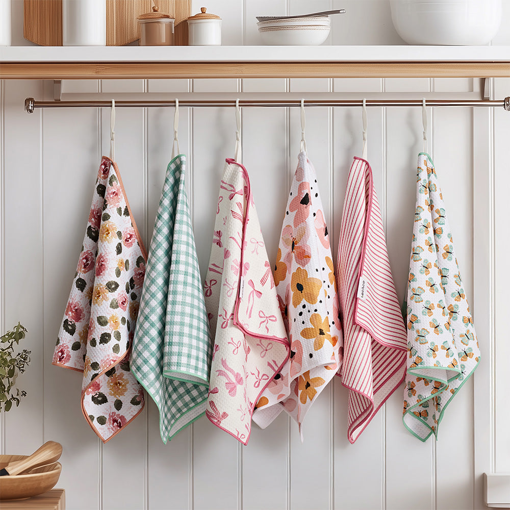 High quality microfiber kitchen dish towels that make drying dishes and kitchen clean up a breeze. These absorbent kitchen towels can hold more than 5x their weight in liquid.