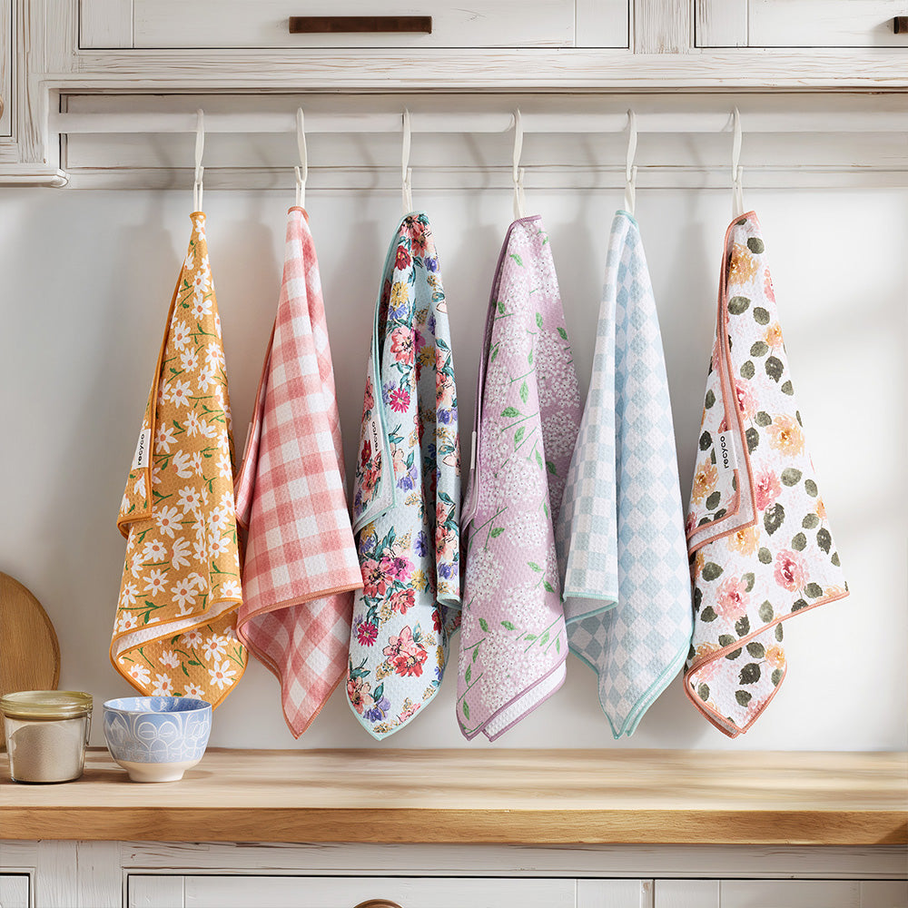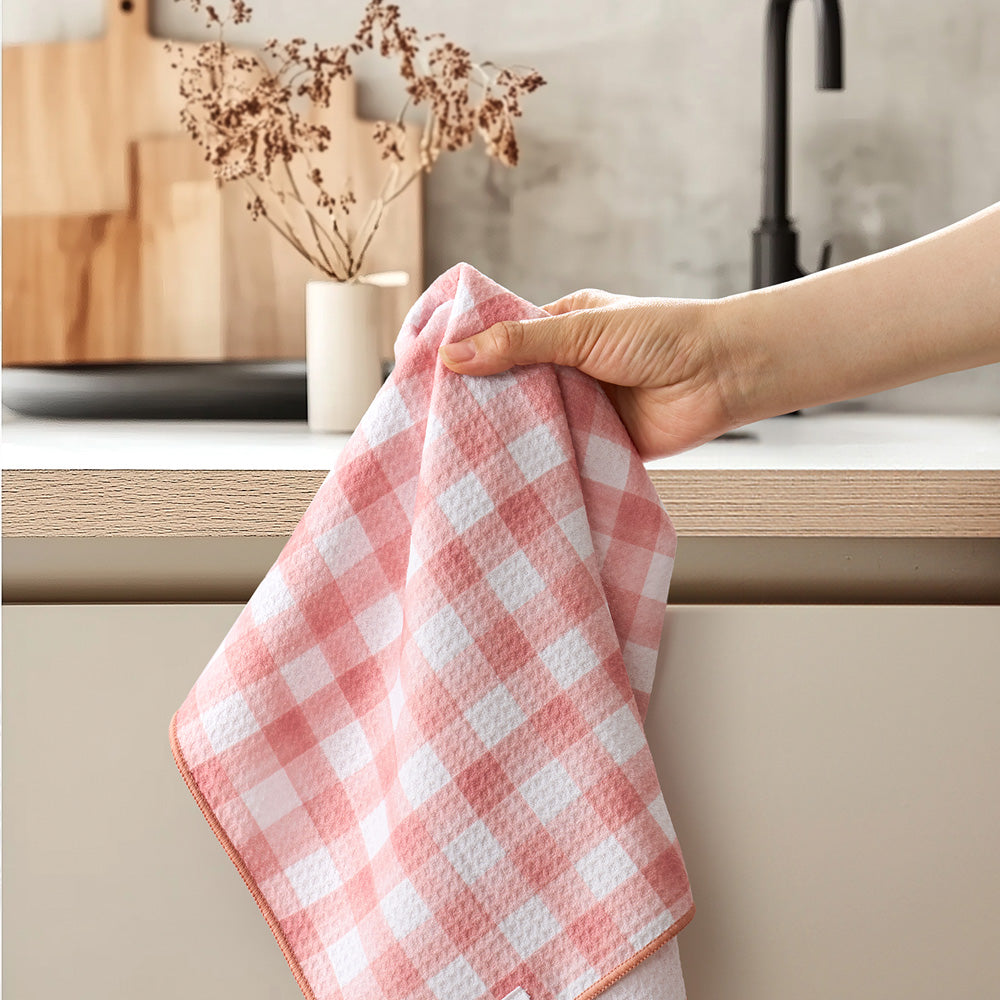 High quality microfiber kitchen dish towels that make drying dishes and kitchen clean up a breeze. These absorbent kitchen towels can hold more than 5x their weight in liquid.