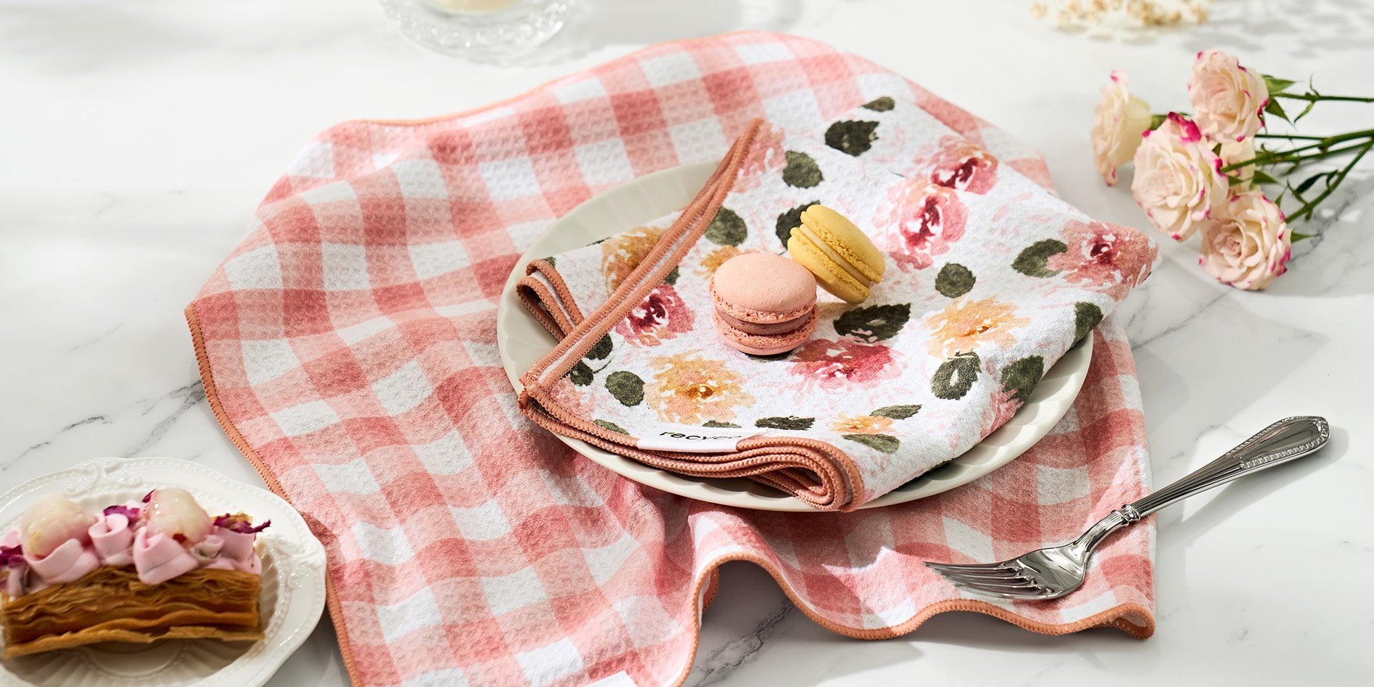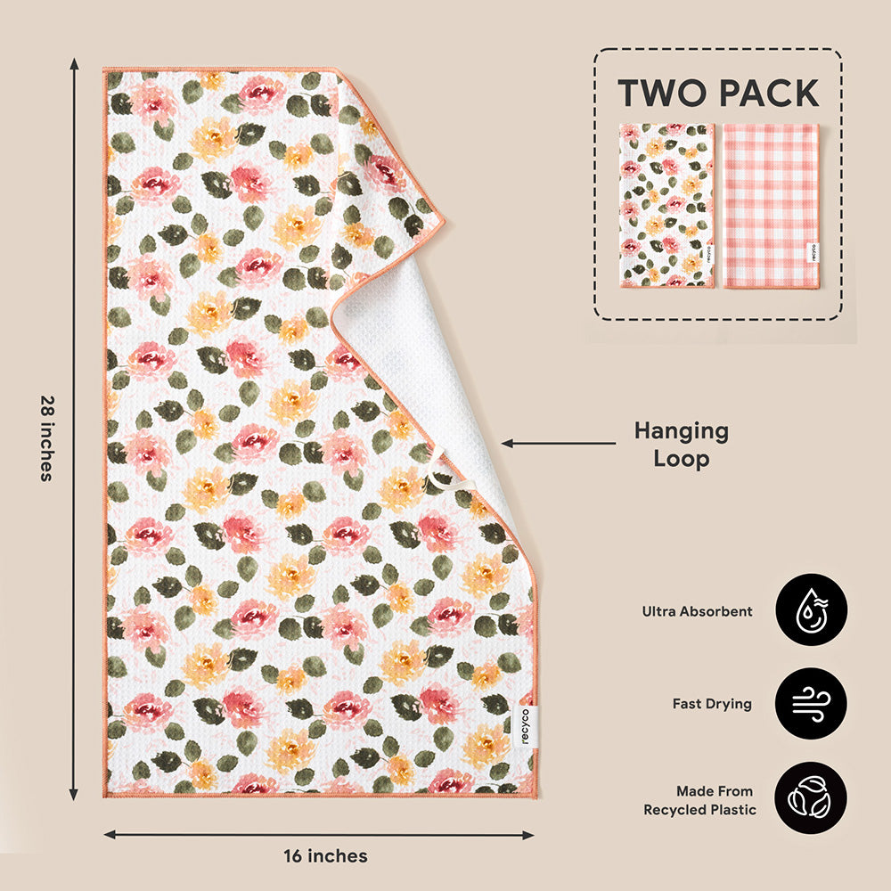 Rose Plaid Waffle Kitchen Towel - 2 Pack