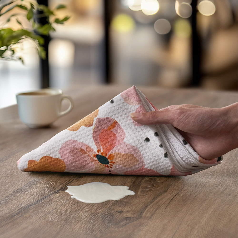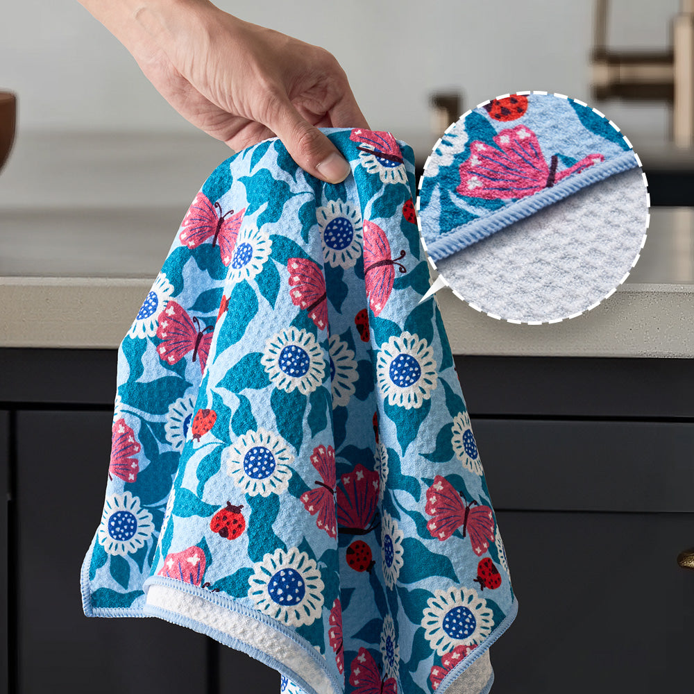 High quality microfiber kitchen dish towels that make drying dishes and kitchen clean up a breeze. These absorbent kitchen towels can hold more than 5x their weight in liquid.
