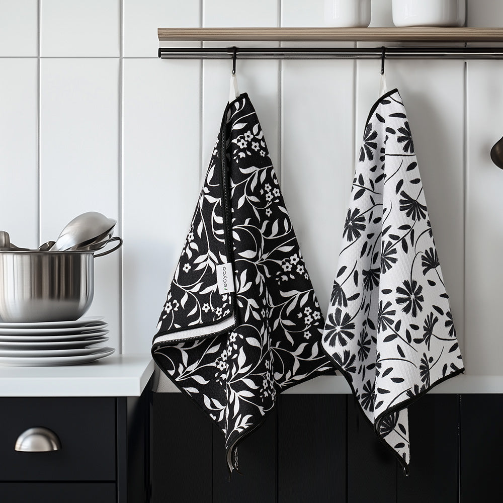 Black & White Mirage Waffle Kitchen Towel - 2 Pack