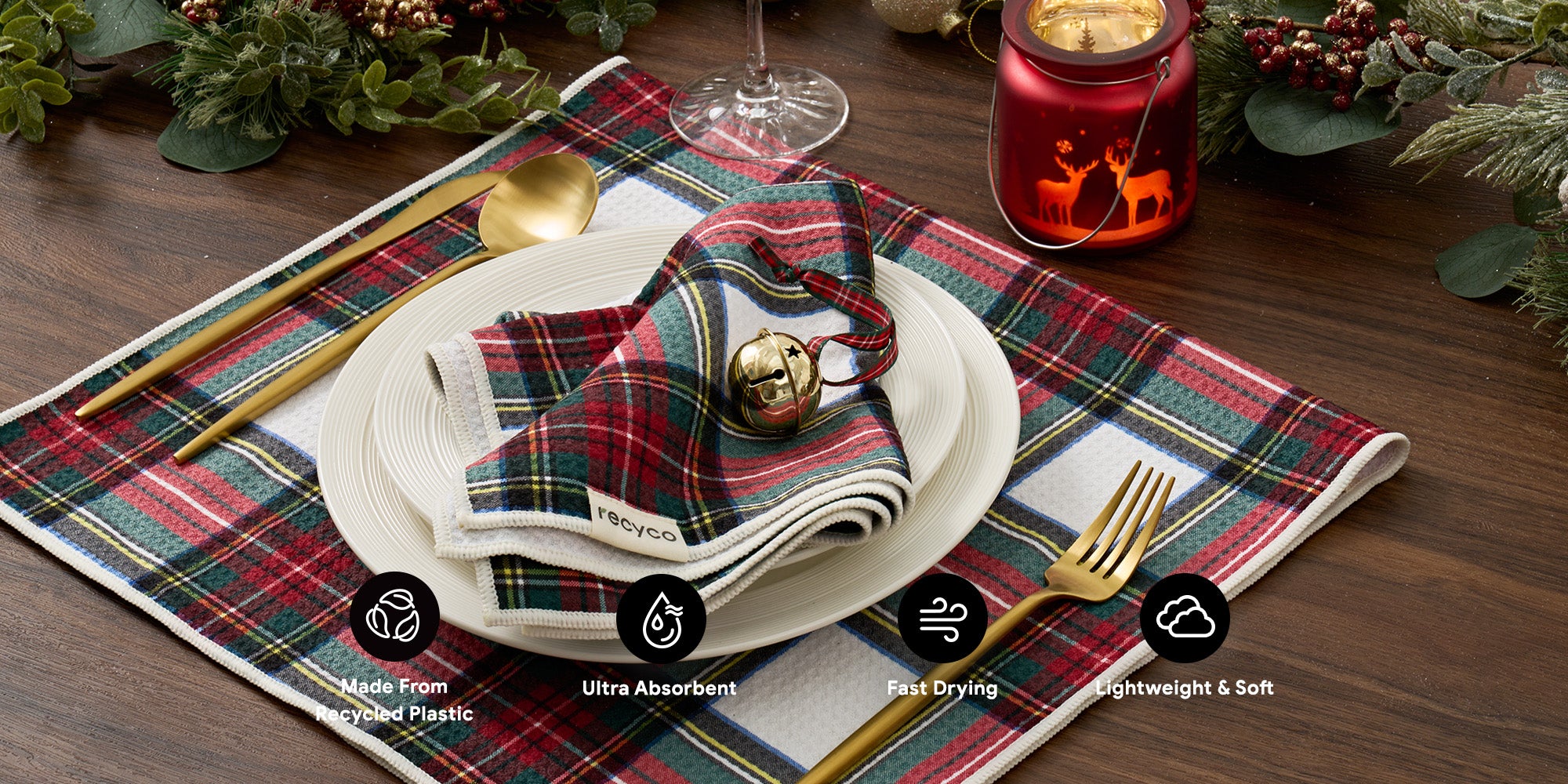Elevate your kitchen with towels that blend style, functionality, and sustainability. Made from 2 recycled plastic bottles, these ultra-absorbent towels hold up to five times their weight in liquid. Lightweight yet durable, they’re crafted with our premium Aerodry™ microfiber—gentle on hands, tough on messes. With fast-drying capabilities and convenient sewn-in loops, they’re the ultimate choice for a cleaner kitchen and a greener planet.