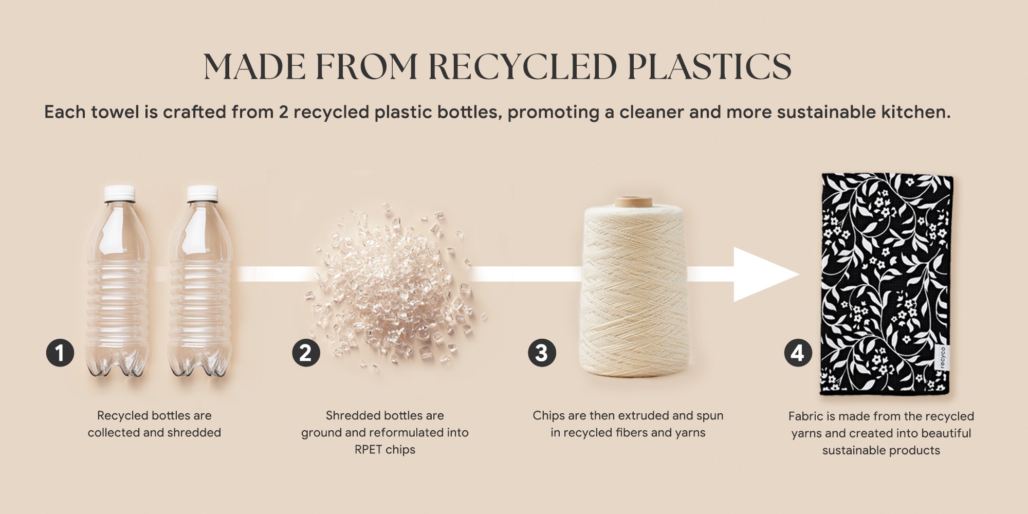 ♺ Each towel is dade from 2 post-consumer recycled plastic bottles.