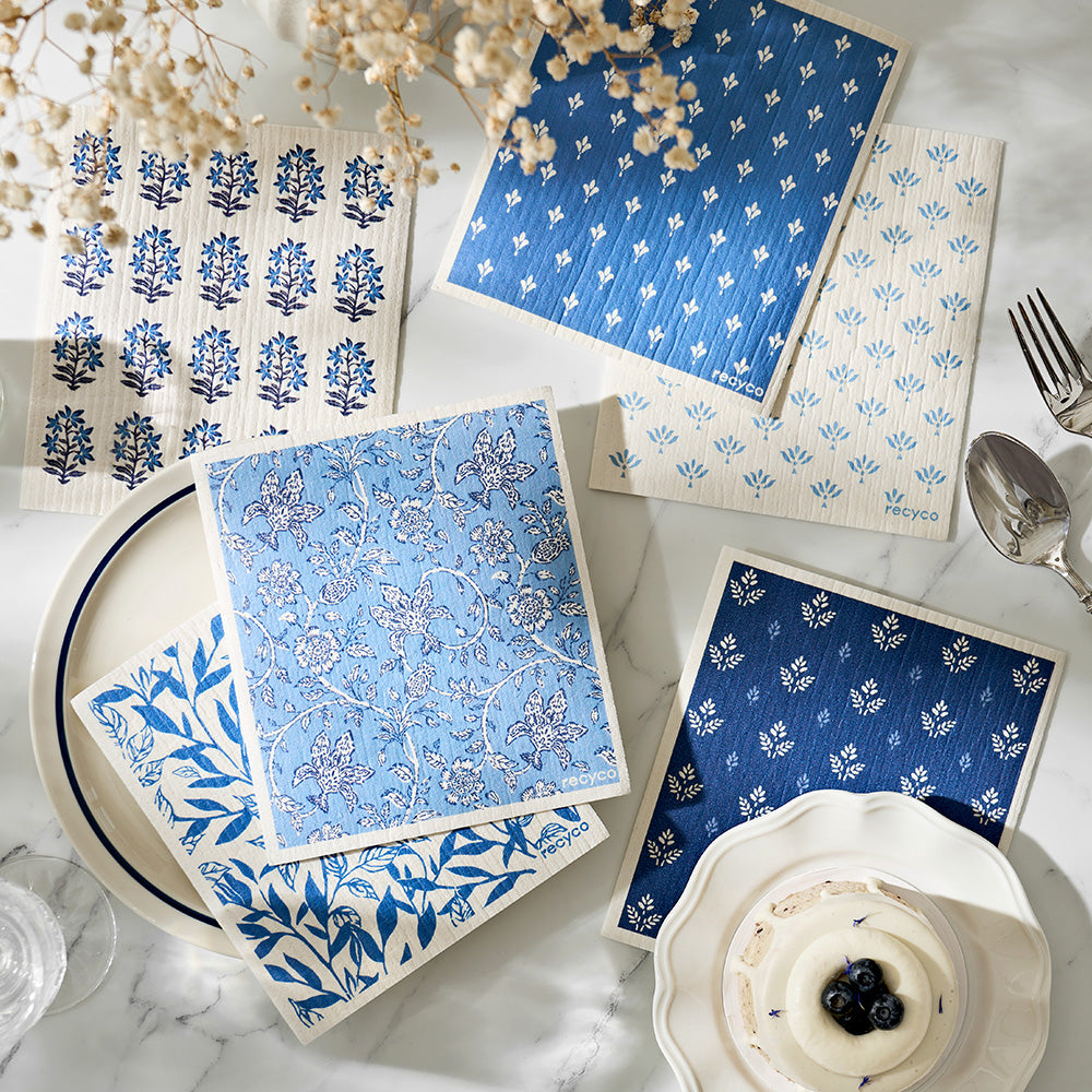 Heritage Florals Blue Swedish Dishcloth Set - 6 Pack